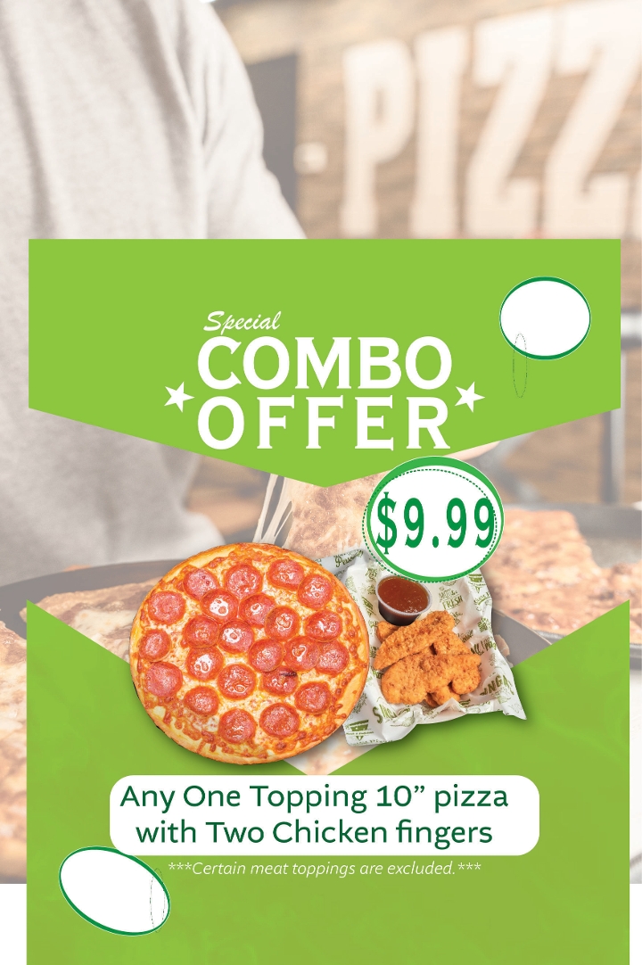 Get any 2 small specialty pizzas & 7 bone-in wings for only $24.99! Additional charges for toppings will apply