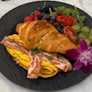 Served on a choice of croissant or focaccia roll with a choice of mixed berries, breakfast potatoes, or bacon