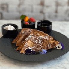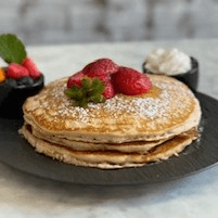 Served with vegan whipped cream and a choice of mixed berries, bacon, sausage or eggs