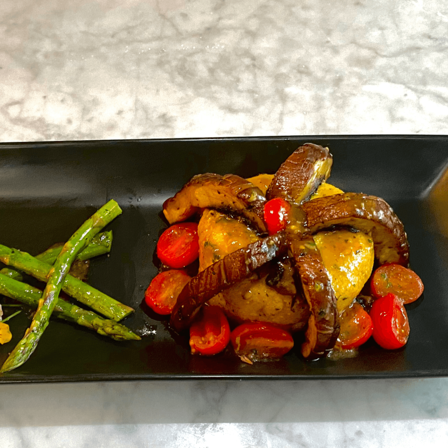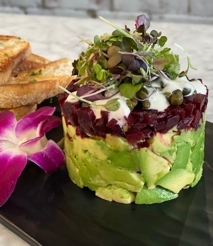 Grilled, smoked, chilled and marinated umami beets, fresh avocado, capers, shallots, lemon dijon aioli