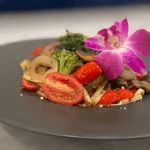 Linguini pasta topped with onions, peppers, mushrooms, zucchini, eggplant, cherry tomato, broccoli, and peas. Looking for more heat request the Spicy Primavera