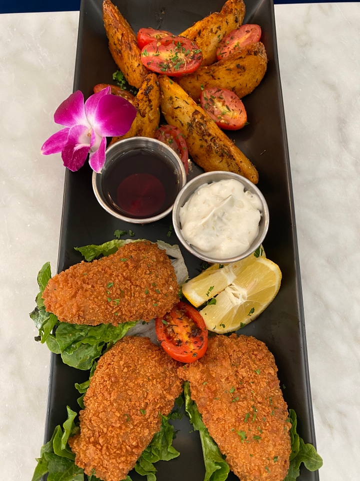 3 large empanada made with seasoned plant-base meat. Served with Marinara and Garlic Aioli dipping sauces. Empanada are served on bed of lettuce with lemon slices.