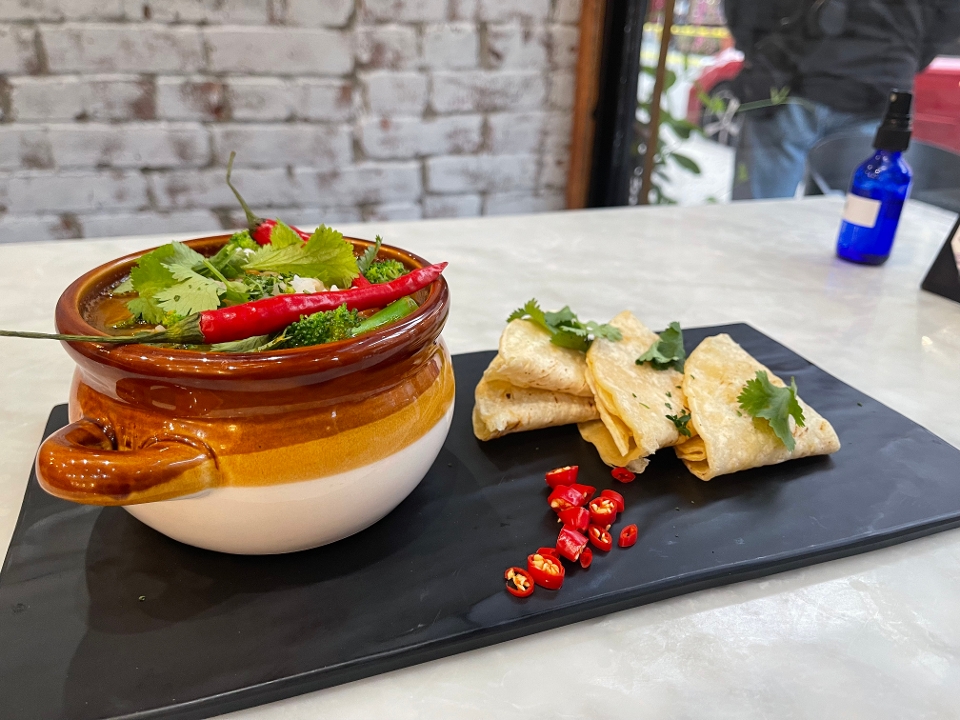 Savory chili topped with sliced avocado, and your choice of house tortilla chips, or toasted Focaccia bread slices.